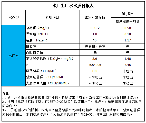 水廠出廠水水質(zhì)日報表(2025-9-5)