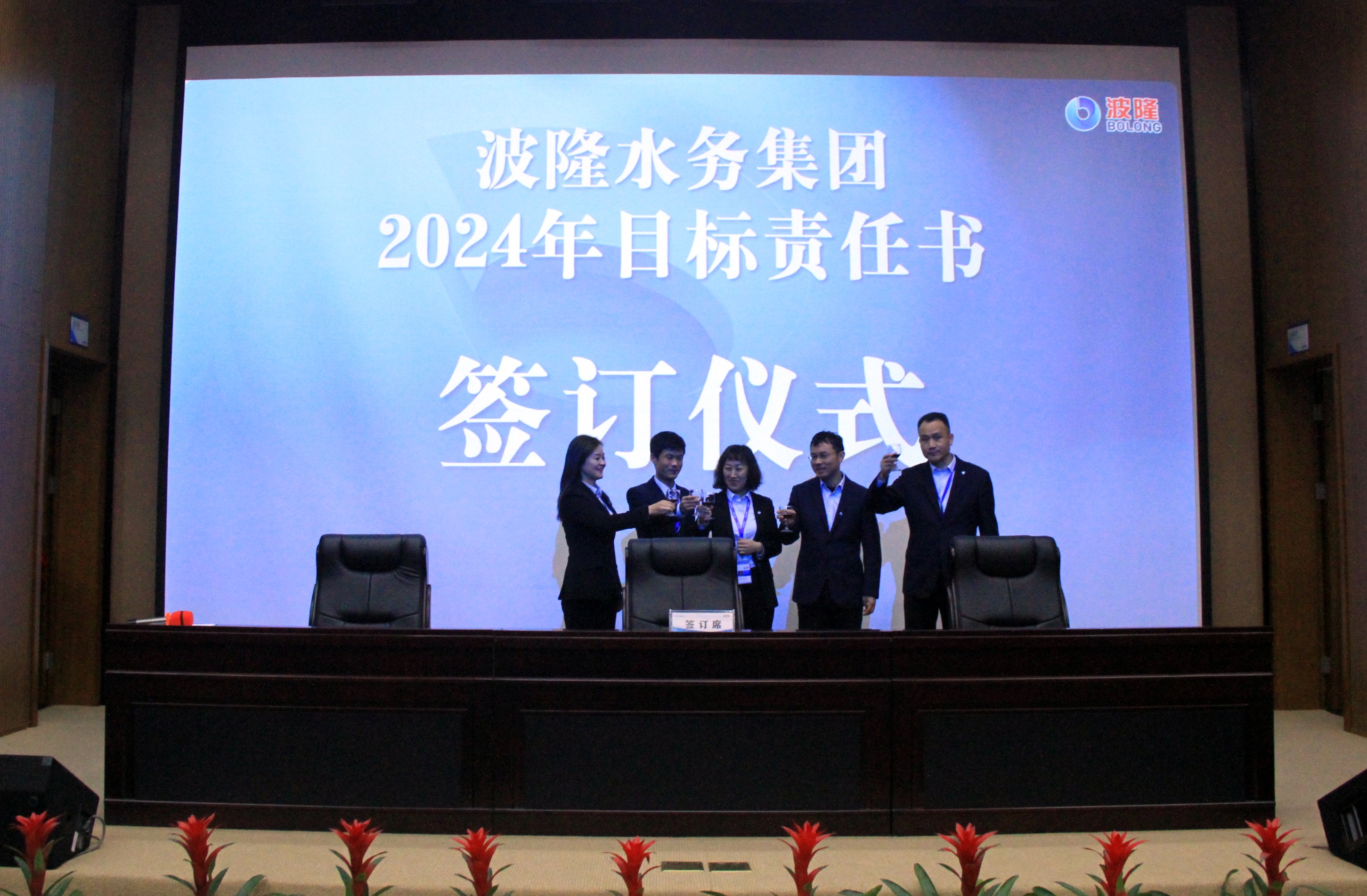 接著,波隆水務集團開展2024年目標責任書簽訂儀式。目標已定,旌旗已展,簽下的名字也意味著沉甸甸的責任與擔當,每一位波隆人明確目標,凝聚信心、勇氣和力量,以奮力登高的姿態穩步前行,全力以赴,開創波隆高效率、高質量發展的新局面。
